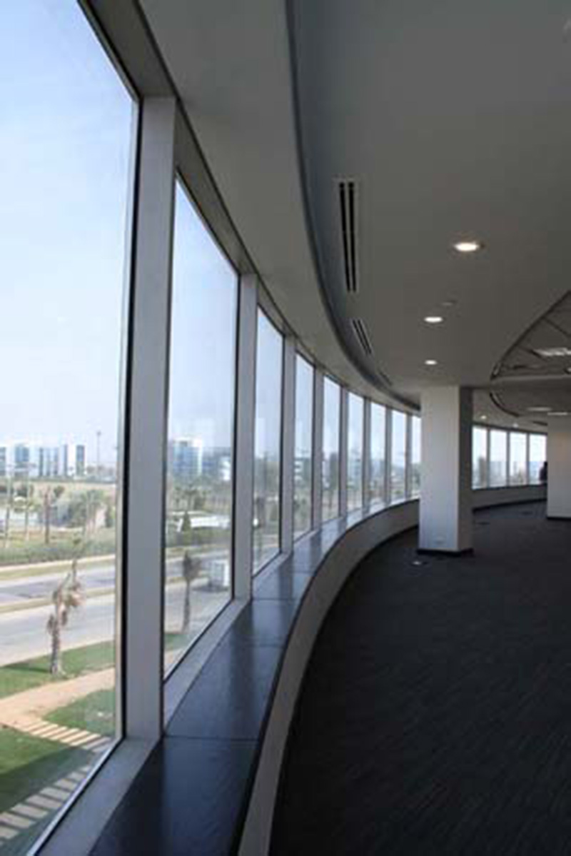 Our assignment consisted of the concrete skeleton and all finishing works of the two basement of 3750 m2 and four typical floors of area 2000 m2 including facades finishes (Structural glazing & aluminum cladding), marble pattern flooring, ceilings (wood, gypsum, etc), fixed joinery doors, and all roof layers finishes. Also all electro-mechanical works (HAVC, electric, fire fighting, plumping, telephone and data).