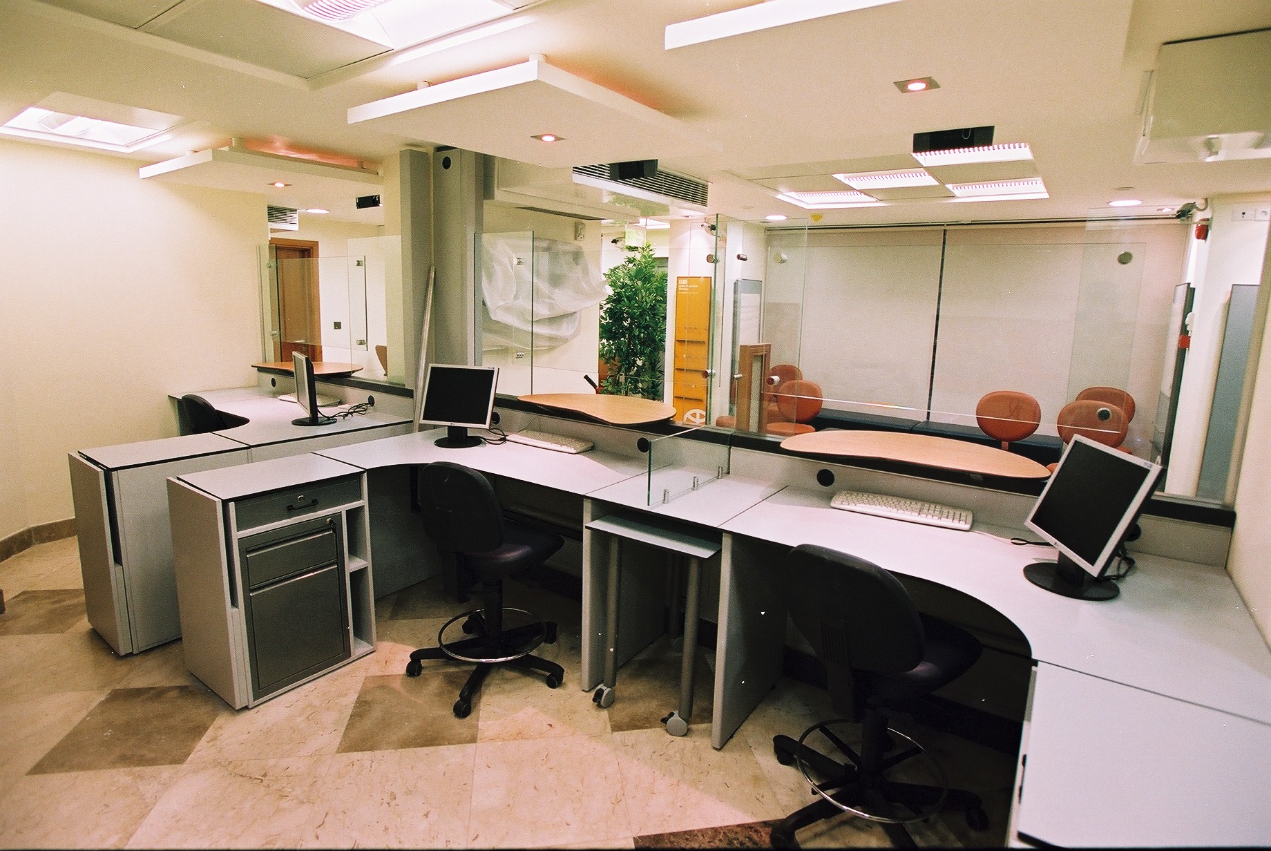 Our assignment as SHUTTERING CONSTRUCTION COMPANY was to renovate 3 different branches of the Bank. Our scope included renovation of the offices, counters, bathrooms, Finishes for floors, walls and ceilings (wood, gypsum, marble, tiling, etc.), fixed joinery, doors, special wood works and paneling, art works and decorative lighting, electrical works, fire alarm ,burglary alarm and air-conditioning systems (MEP works). The entrance with an automatic door, structure glaze, Wall/floor coverings such as marble, carpets and parquet.